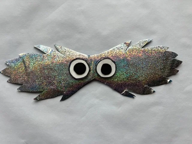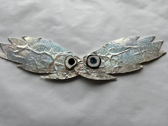 Using materials known to trigger a strong instinctual avoidance response in birds I created the first pair of ScareWings. The original pair (shown here) are battered from years of daily use in rain, sun, and mountain weather.